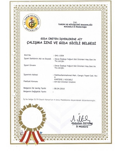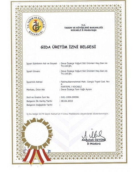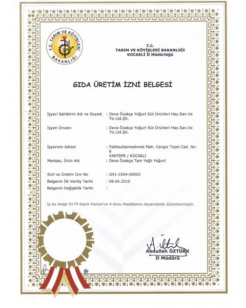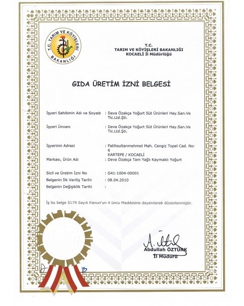 Gıda Üretim İzni Belgesi