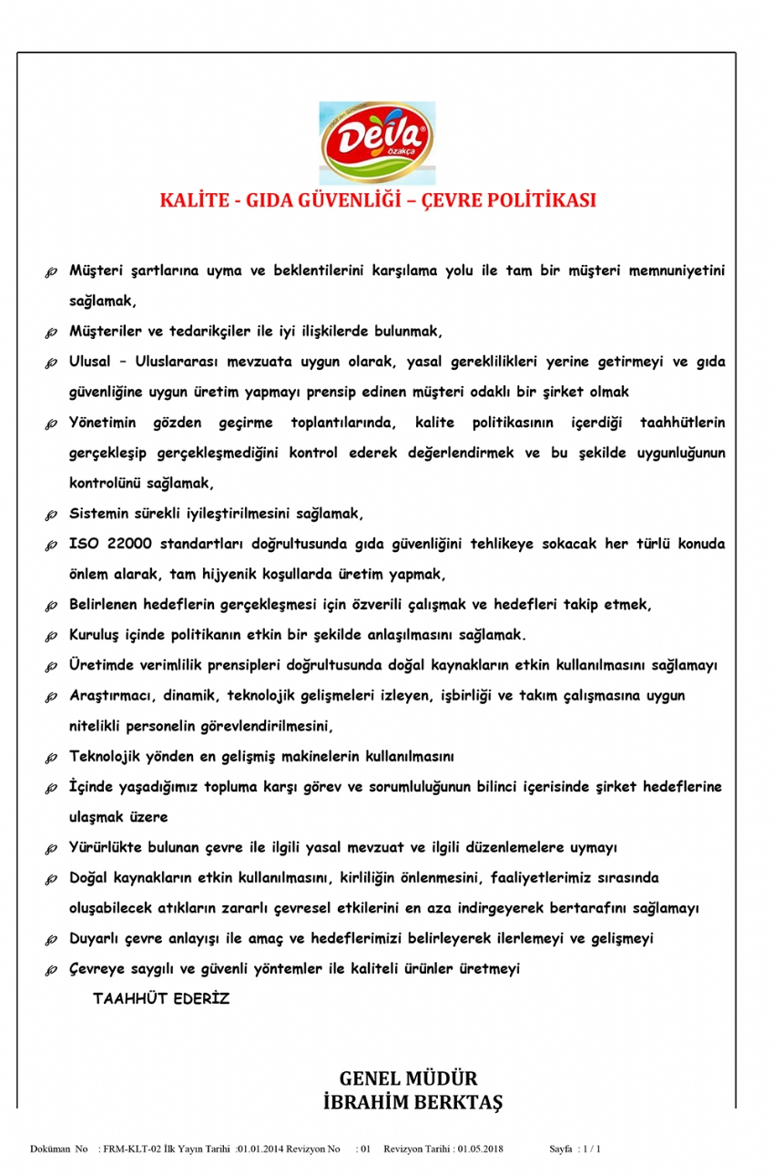 Gıda Güvenlik Çevre Sertifikası