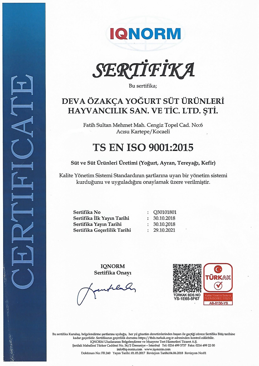 Kalite Yönetim Sistemi Belgesi